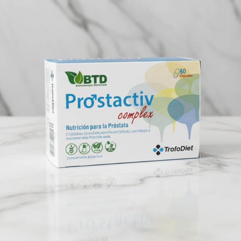 Prostactiv Complex® es un complemento alimenticio avanzado diseñado para promover la salud prostática y el bienestar general de los hombres. Su potente fórmula combina extractos naturales, vitaminas, minerales y probióticos, con ingredientes específicos como Saw Palmetto, Licopeno, Pygeum, y Extracto de Ortiga verde, todos ellos conocidos por su capacidad para apoyar la función prostática y mejorar la calidad de vida masculina.